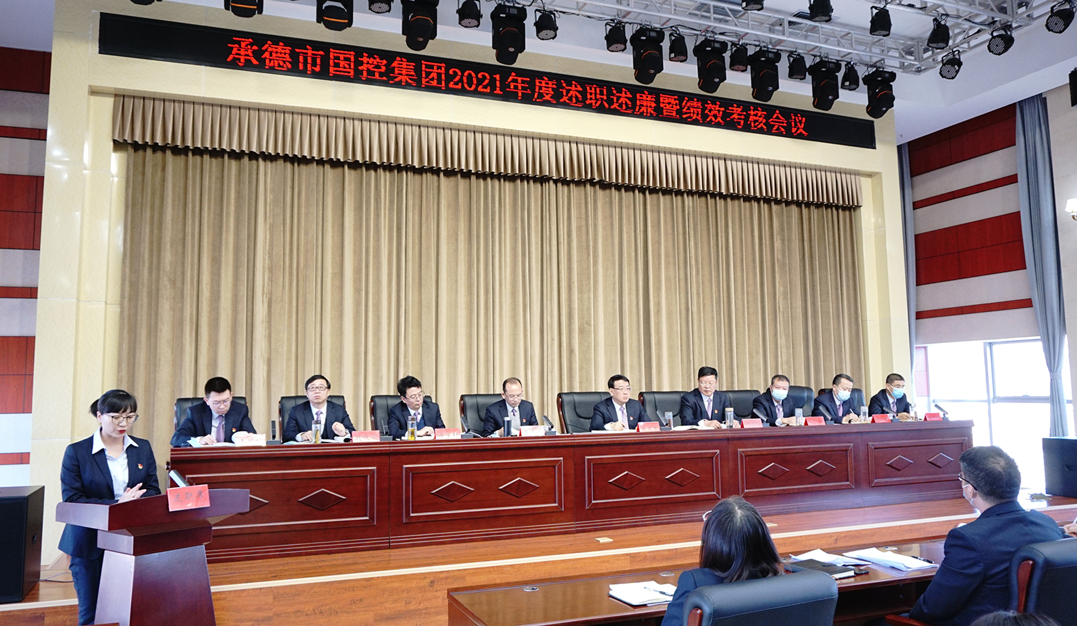 2022年1月13日,國控集團組織召開2021年度述職述廉暨績效考核工作會議,集團公司黨委書記、董事長張建軍出席會議并講話,黨委副書記、總經理徐俊儒主持會議。按照上級部門疫情防控相關要求,會議分設主會場、分會場,集團公司領導班子成員、各部室及子公司負責人參加主會場會議,其余人員參加分會場會議。