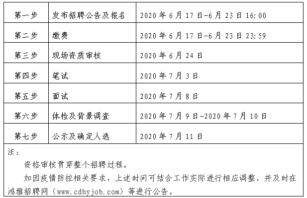 2020 年6 月 17日至 2020 年6月 23 日 16:00 在鴻雅招聘網(wǎng)(http://www.cdhyjob.com/)、鴻雅微信公眾號(hào)、國(guó)控集團(tuán)官方網(wǎng)站等發(fā)布招聘公告。